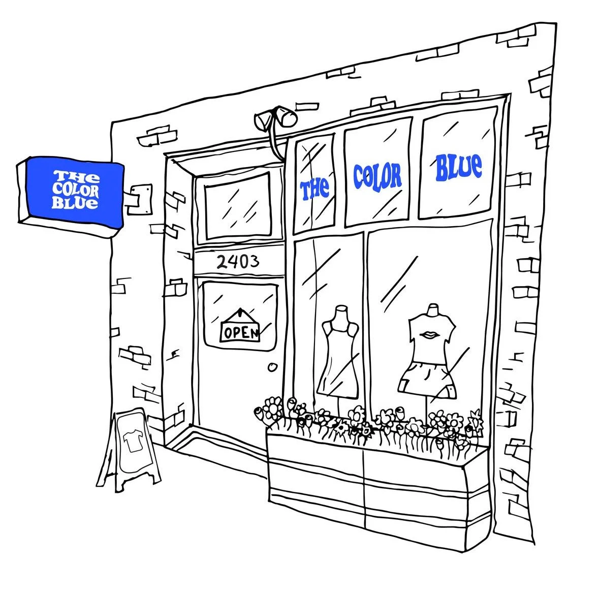 This electric blue and playful typography capture the funky and fresh selection that The Color Blue offers.